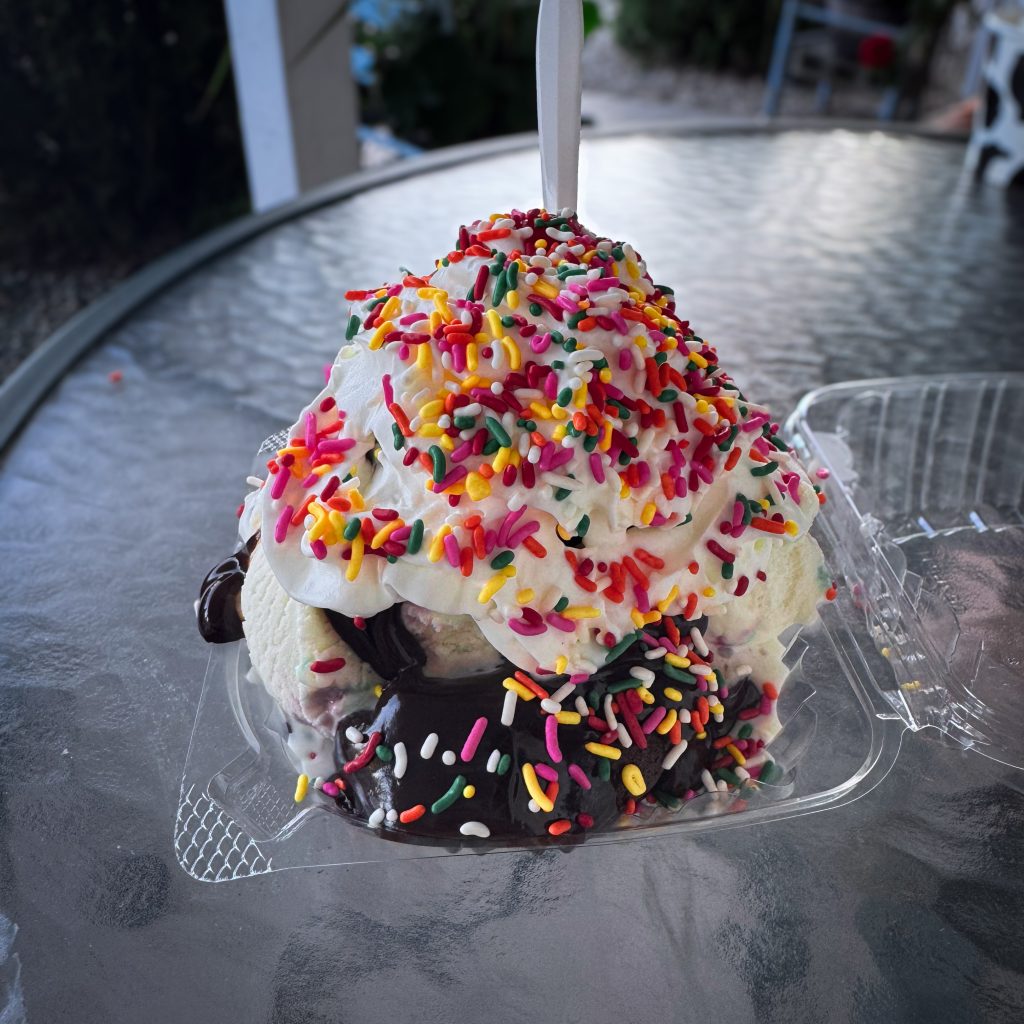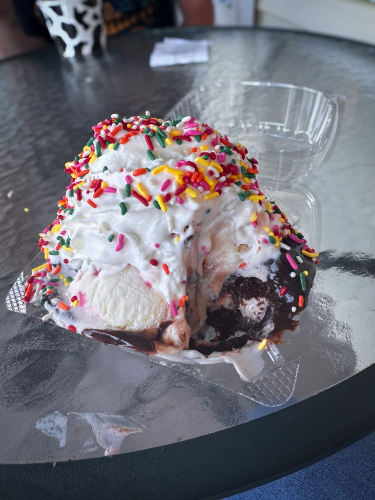We revisited Testa’s and had the same meal and even the same bartender as last year, which felt like a fun tradition. We made multiple stops at Udderly Heaven for ice cream, including a whoopie pie topped with ice cream that Emily could not stop thinking about. West Eden Pizza, just a few miles from the campground, served up excellent pizza for an easy dinner night.